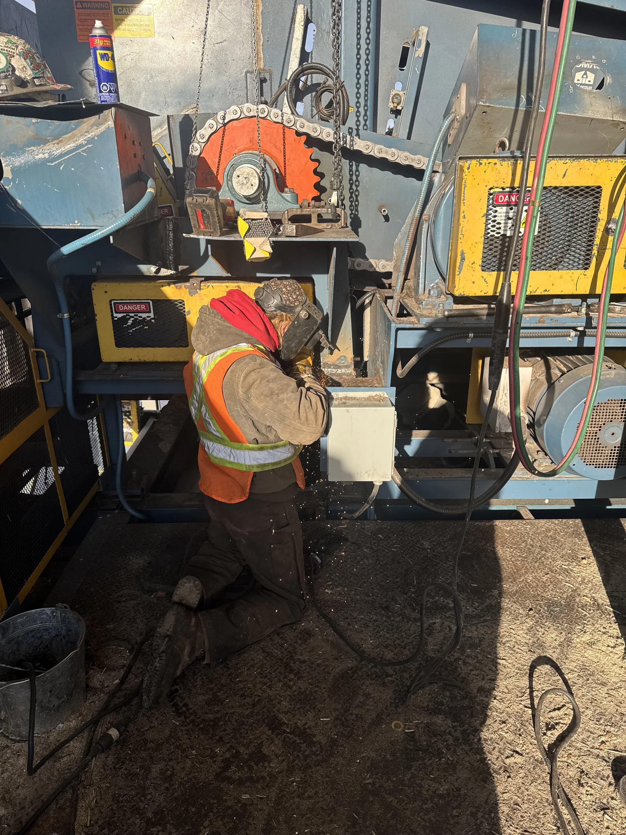 Throughout this winter our team has been working with MLTC bio energy to ensure their plant is running Efficiently as possible with furnace cleaning, laidig maintenance and repairs, moving floor hold down replacement and We also played a part in removing part of their furnace to repair a damaged thermal oil line.